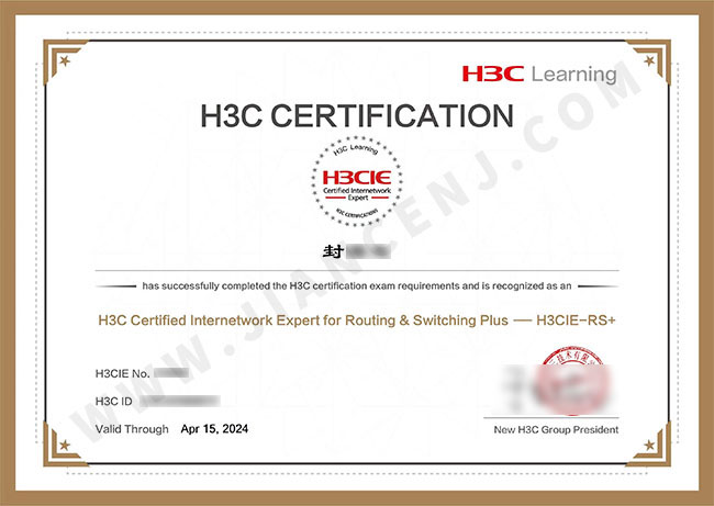 恭喜封同學、連同學、張同學喜提H3CIE-RS+證書。